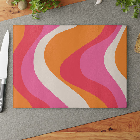 Retro 60s Groovy Hippie Swirl MCM Pink & Orange Glass Cutting Board
