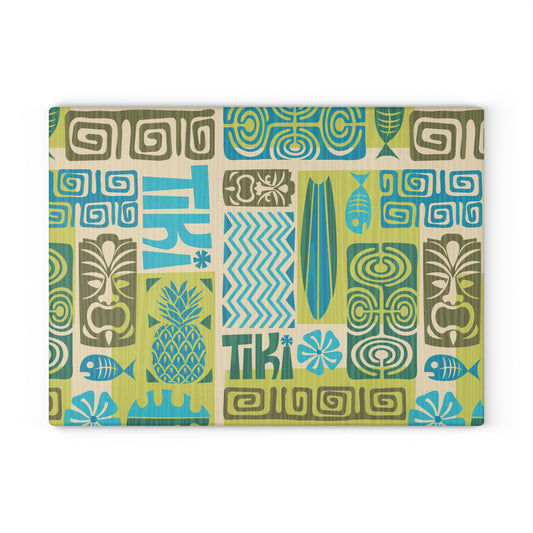 Retro 60s Tiki Tastic Mid Century Mod Green & Blue Glass Cutting Board
