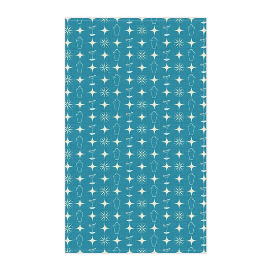 Retro Atomic Burst, Martini & Shaker MCM Blue Tea Towel
