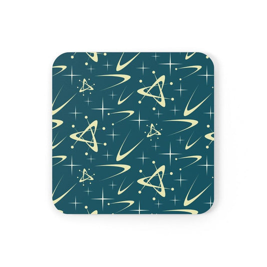 Retro Atomic Boomerang Blue Mid Century Coaster Set