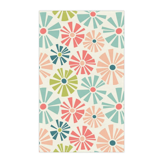 Retro Mid Mod Flowers Multicolor Cotton Kitchen Towel