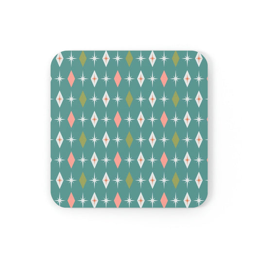 Retro 50s Mid Century Bursts and Diamonds Teal & Pink Coaster Set