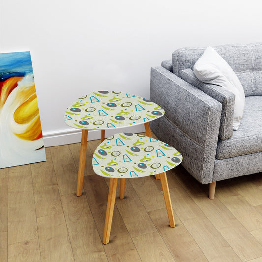 Retro 50s Lines and Orbs Mid Century Modern Blue & Green Nesting Accent Tables