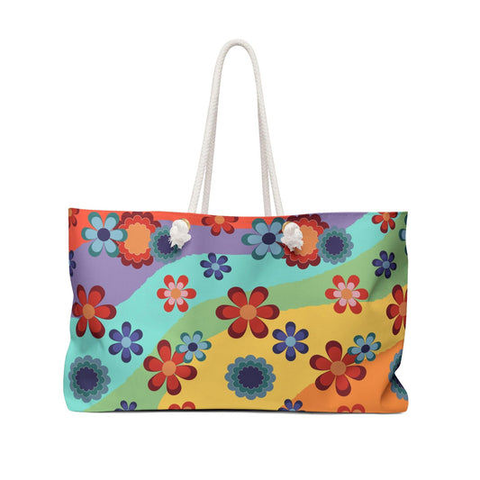 Groovy Flowers Colorful Rainbow Hippie Weekender Bag