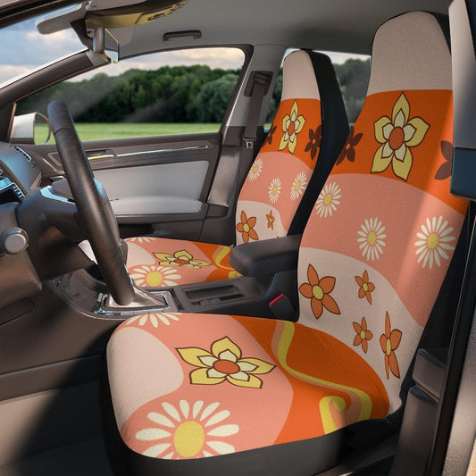 Groovy Boho Chic Flowers Orange Car Seat Covers