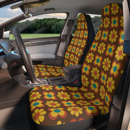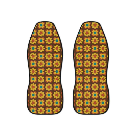 Retro 60s 70s Groovy Flowers Brown & Mustard MCM Car Seat Covers