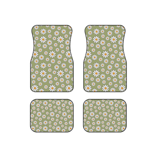 Retro Boho Daisy Sage Green MCM Car Mats (Set of 4)