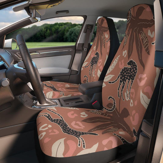 Retro Boho Leopard Pink & Brown Mod Car Seat Covers