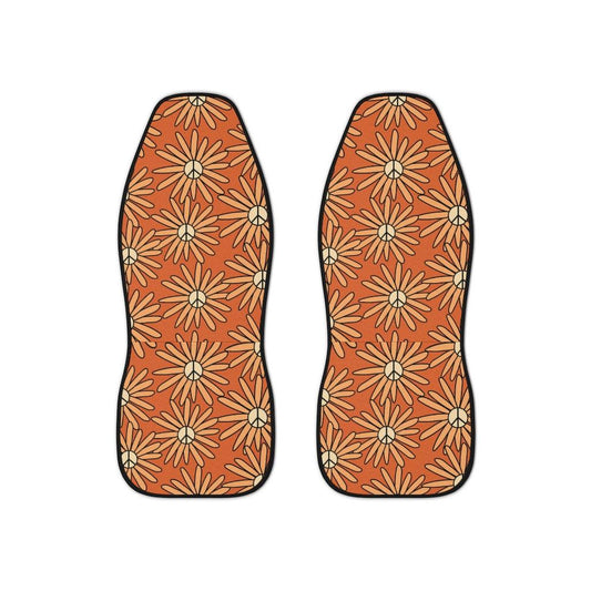 Groovy Boho Peace Sign Daisy Orange & Yellow Car Seat Covers