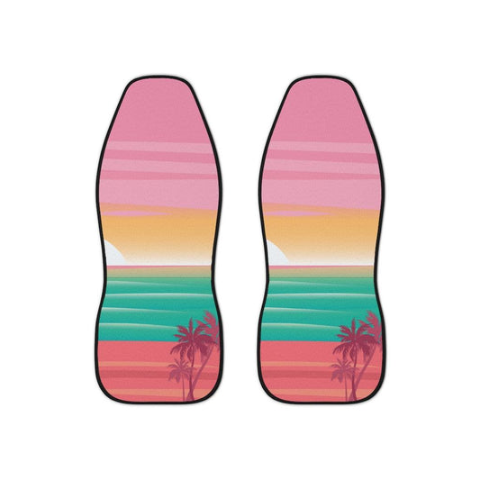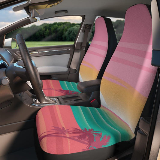 Beach Sunset and Palm Tree Pink Retro Car Seat Covers