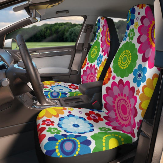 Retro Boho Flowers Colorful Car Seat Covers