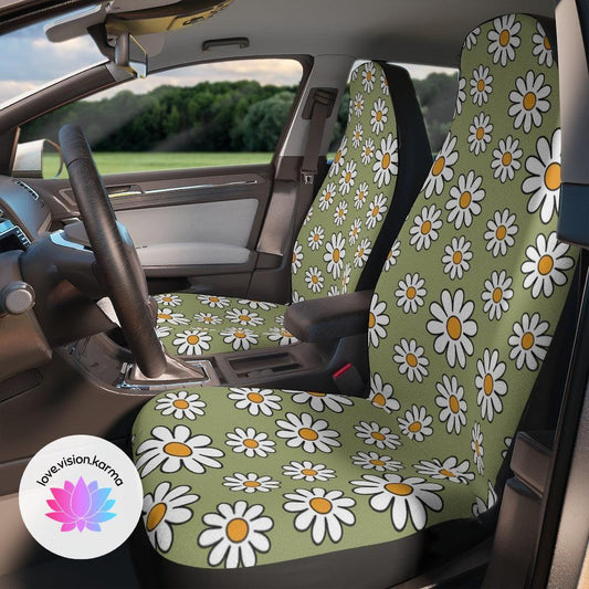 Retro Boho Daisy Sage Green MCM Car Seat Covers