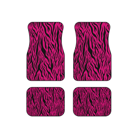 Pink Tiger Stripe Animal Print Car Mats (Set of 4)