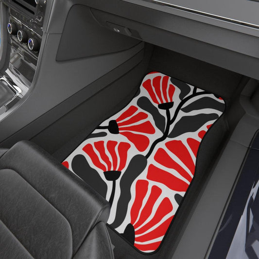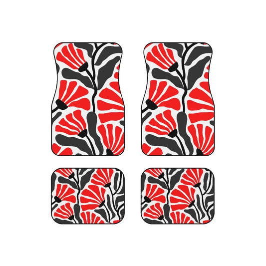 Groovy Abstract Flowers Retro MCM Red, White & Black Car Mats (Set of 4)