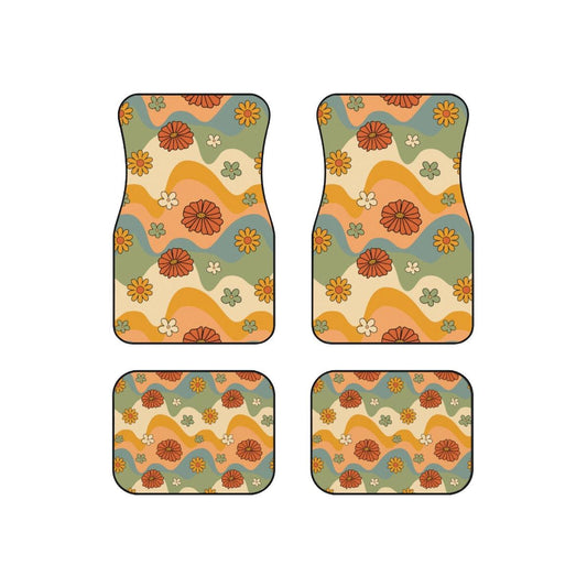 Boho Flowers and Waves Multicolor MCM Car Mats (Set of 4)