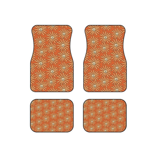 Groovy Boho Peace Sign Daisy Orange & Yellow Car Mats (Set of 4)