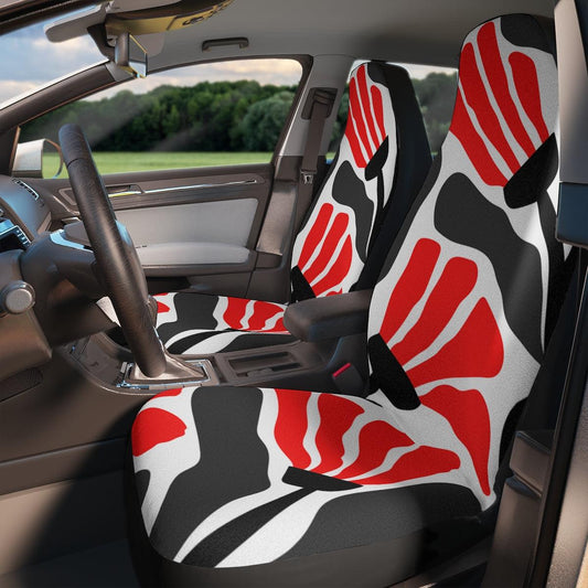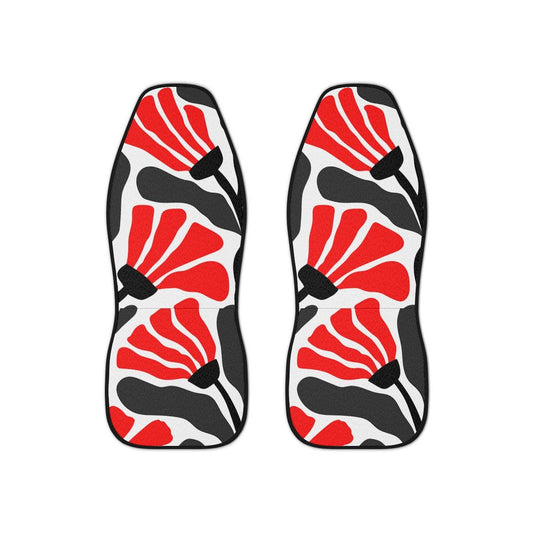 Retro Groovy Abstract Flowers Red, Black and White MCM Car Seat Covers
