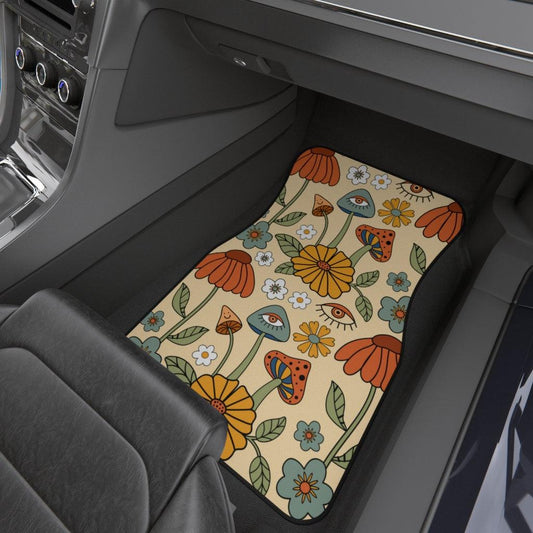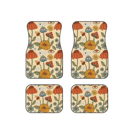 Boho Trippy Mushroom & Flowers Hippie Cottagecore Car Mats (Set of 4)