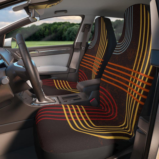 Retro 70s MCM Lines Distressed Brown Car Seat Covers