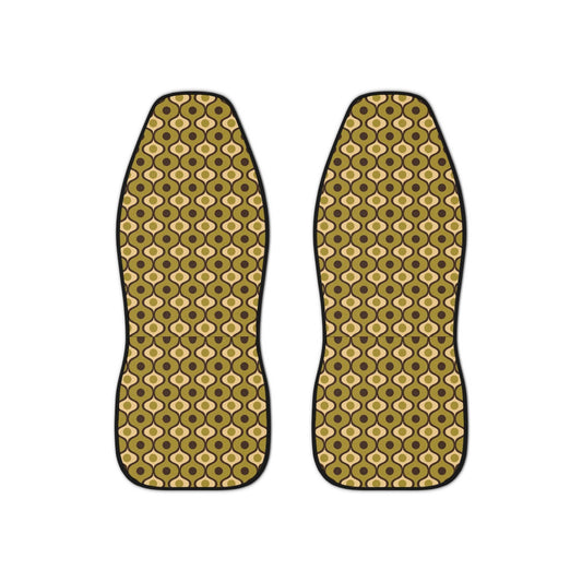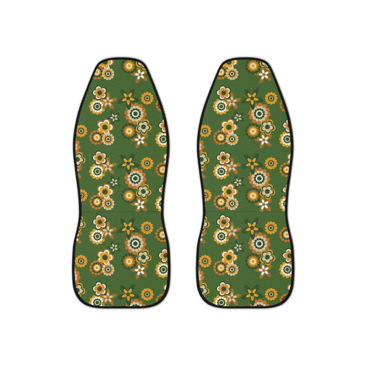 Retro 60s 70s Groovy Flowers Mid Century Mod Mustard & Green Car Seat Covers