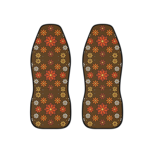 Retro 60s 70s Groovy Mod Daisy Floral Mid Century Brown & Orange Car Seat Covers