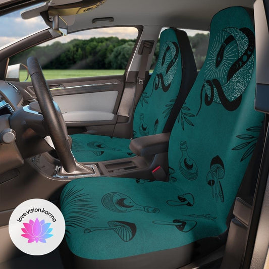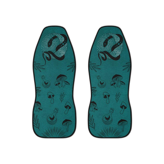 Mystical Snake Boho Witchy Celestial Mushrooms & Potions Teal Car Seat Covers