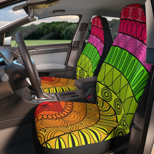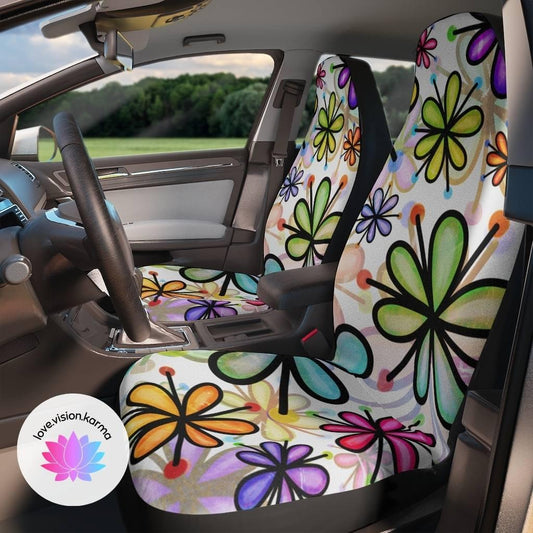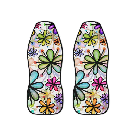 Cute & Colorful Groovy Flower Doodle Car Seat Covers
