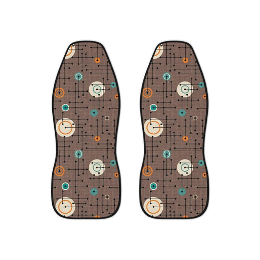 Mid Century Modern Lines & Circles Brown Retro Style Car Seat Covers