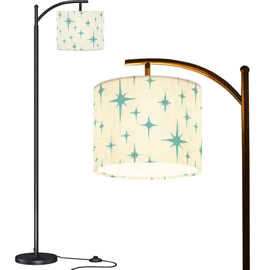 Retro 50s Atomic Starburst Mid Century Mod Blue and Off-White Arc Floor Lamp
