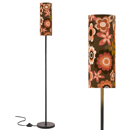 Retro 60s 70s Groovy Flowers Boho MCM Brown Floor Lamp