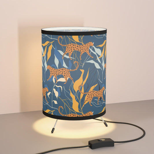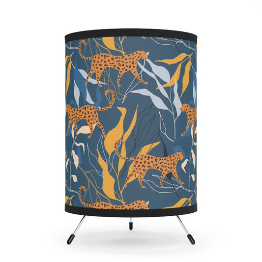 Retro Boho Leopard Jungle Cat MCM Blue Tabletop Accent Lamp