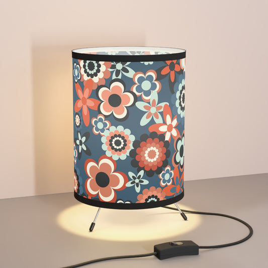 Retro 60s 70s Groovy Flowers Mid Century Mod Coral & Blue Tripod Accent Lamp