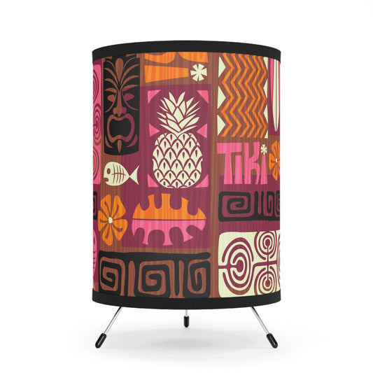 Tiki Retro 60s Brown, Orange and Pink Tabletop Tripod Lamp