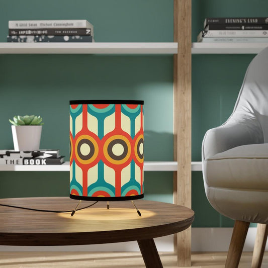 Retro 50s 60s Mid Century Mod Vibrant Abstract Tabletop Tripod Lamp