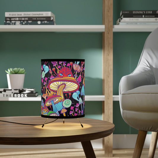 Trippy Space Mushroom Hippie MCM Colorful Tripod Tabletop Lamp