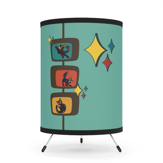 Retro Atomic Cats Kitsch MCM Blue Tripod Tabletop Lamp