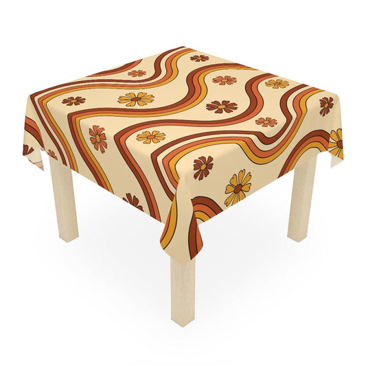 Retro 60s 70s Groovy Mod Daisy, Floral Mid Century Brown & Orange Tablecloth