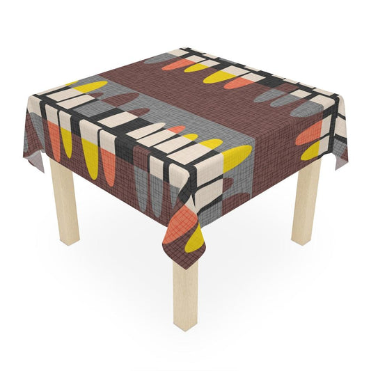 Retro MCM Abstract Brown, Gray, Yellow and Orange Tablecloth