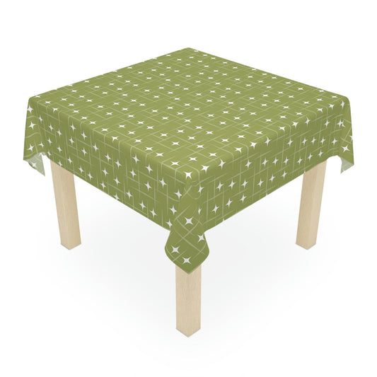 Retro Atomic Mini Starburst Mid Century Green Tablecloth