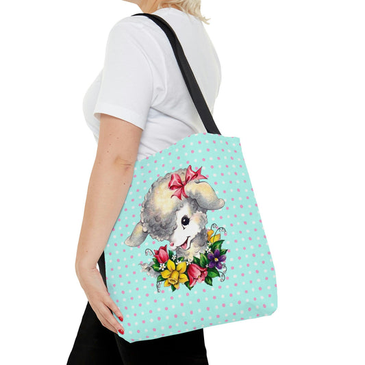 Retro Lamb Vintage Easter Kitsch MCM Blue Tote Bag