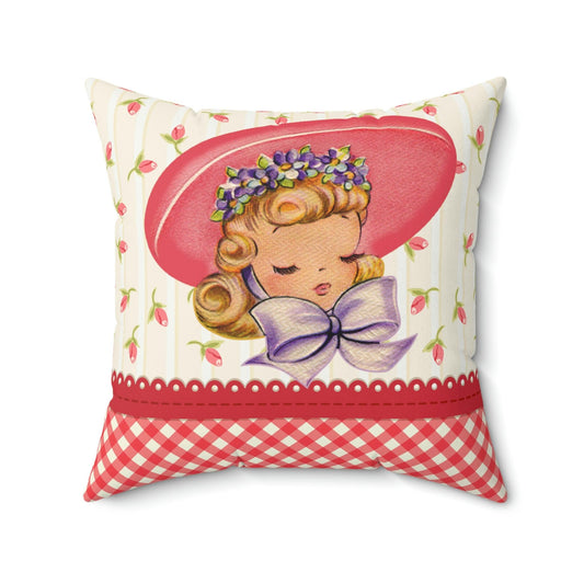 Vintage Lady, 50s Retro Easter Multicolor MCM Throw Pillow