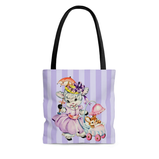 Vintage Kitsch Easter Lamb and Bunny Purple MCM Tote Bag