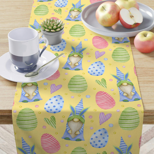 Easter Gnomes Wearing Bunny Hats Spring Colors Table Runner