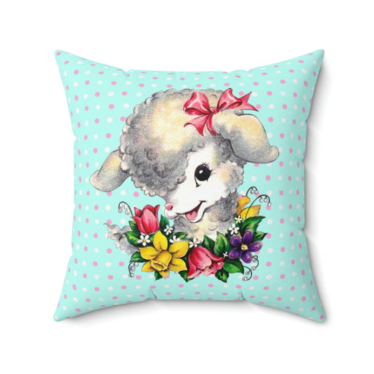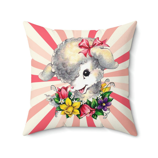 Vintage Kitsch Lamb, Retro 50's Easter Multicolor MCM Pillow