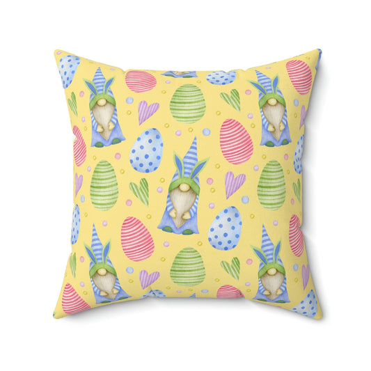 Gnomes with Bunny Ears Spring Yellow Easter Throw Pillow