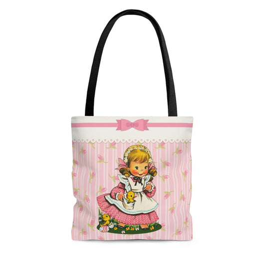 Vintage Kitsch Girl with Chicks MCM Easter Pink Tote Bag