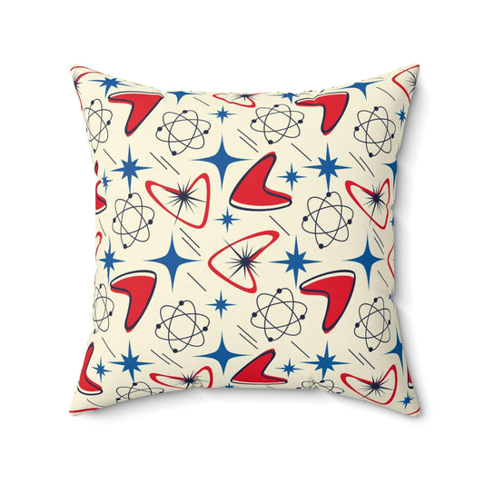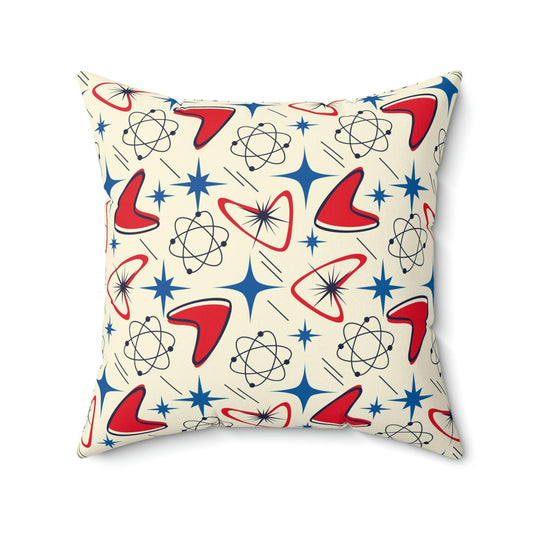 Retro 50s Atomic Boomerangs Space Age Starburst Red, Blue and Cream MCM Throw Pillow