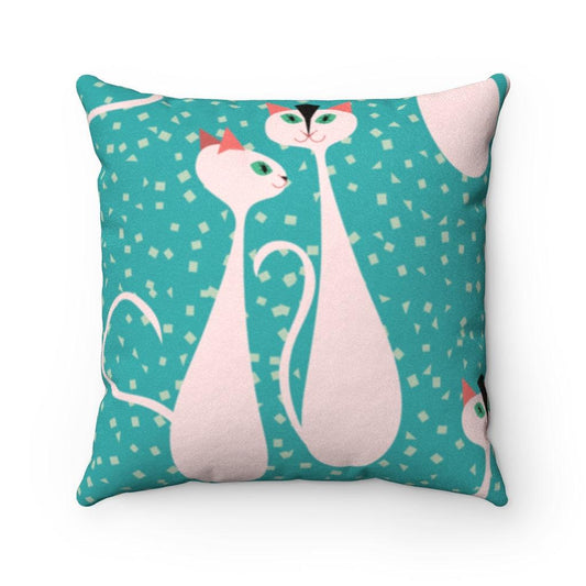 Retro 1950s Atomic White Cats Mid Century Modern Pillow