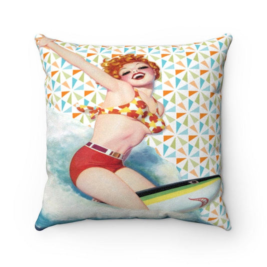 Retro 1950's Surfboard Riding Pin Up Girl MCM Throw Pillow