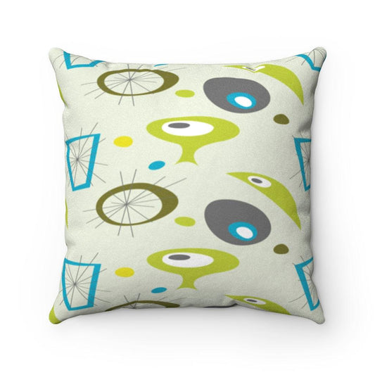 Retro 1950's Abstract Alien Space Age Mid Century Blue & Green Pillow